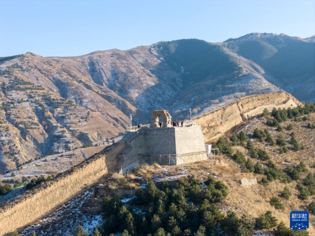 游客参观位于朔州市山阴县的广武长城(无人机照片,1月6日摄)。