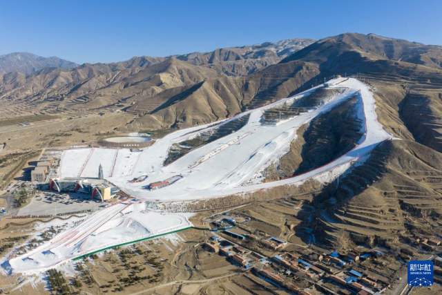位于山阴县广武镇的广武国际滑雪场全景(无人机照片,1月8日摄)。