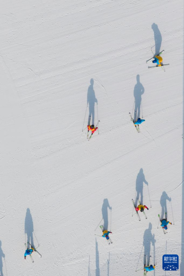游客在广武国际滑雪场滑雪(无人机照片,1月7日摄)。