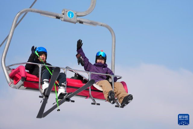 在广武国际滑雪场,游客乘坐索道缆车(1月7日摄)。