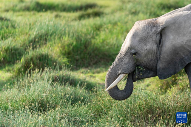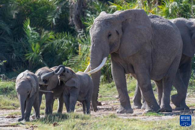 这是1月8日在肯尼亚安博塞利国家公园拍摄的大象。