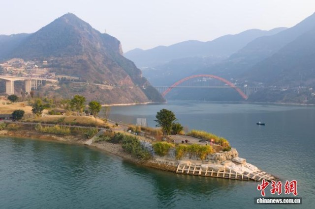 1月15日,航拍重庆巫山宁江渡生态公园。中新社记者 何蓬磊 摄