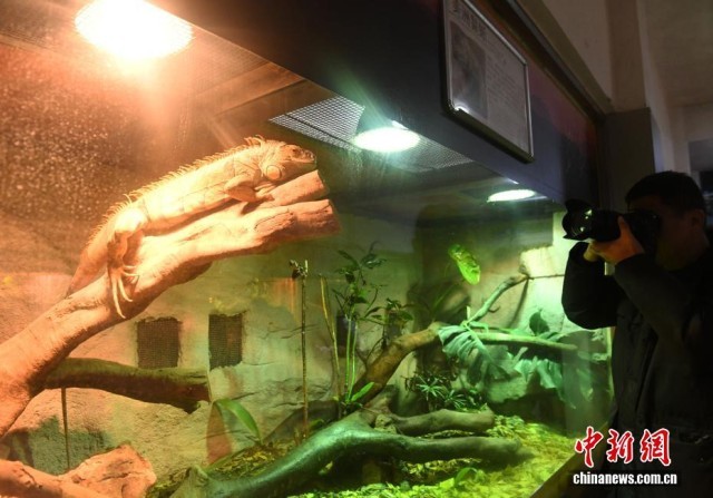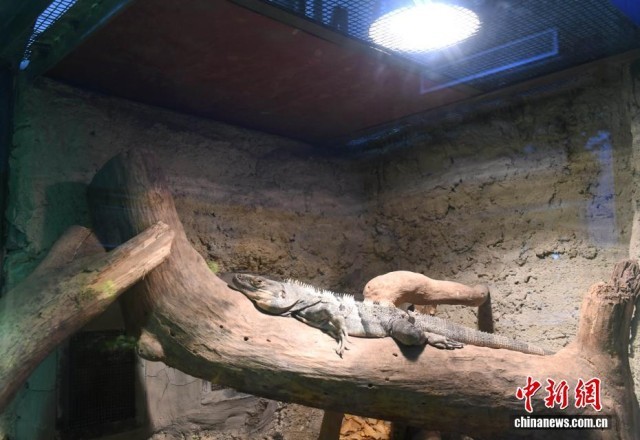 1月21日,重庆动物园在两栖爬行馆、可爱动物区等场所展示了为野生动物防寒保暖的系列措施,让民众了解动物园为野生动物防寒保暖的方式。据了解,在寒冷的冬天,重庆动物园的工作人员根据不同动物的生活习性,分别采用油汀、空调、地暖、加温灯等设备调整室内温度,保障动物温暖过冬。同时,饲养员还根据不同动物的食性,科学升级食谱,确保动物们冬季营养不缺位。图为美洲鬣蜥在加温灯下取暖吸引参观者驻足拍照。
