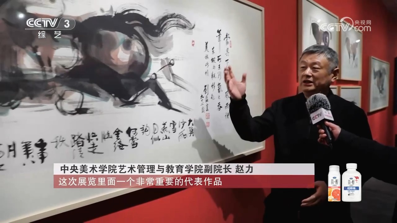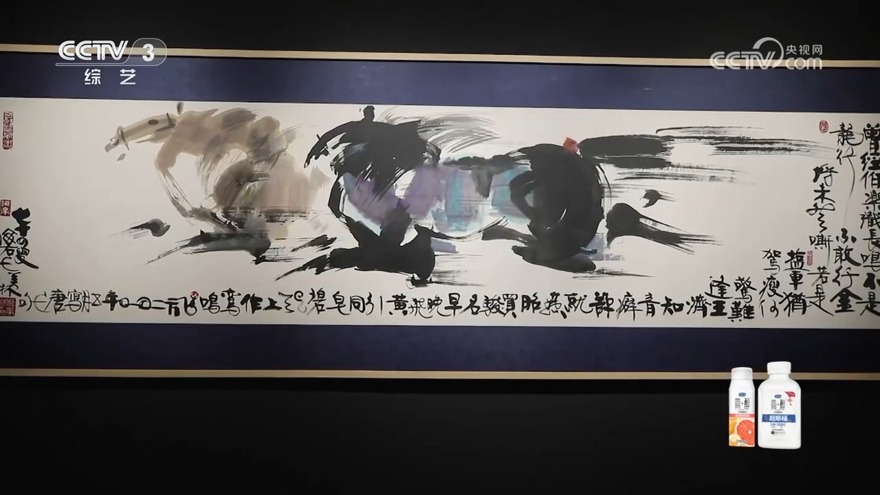 中央美术学院艺术管理与教育学院副院长 赵力:我们来看到这一个是这次展览里面一个非常重要的代表作品,马的奔腾的形象,甚至马的蹄子都没有了,跑得这么快。然后最重要的是马的结构,你看有方、有圆、有侧面,你可以看到它既是一种和马有关的一种生趣、生机,同时又是一种中国笔墨的神采飞扬。