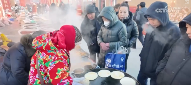 逛大集怎么能少得了美食。美食区里,刚出锅的苞米面大饼子金黄软糯。摊主介绍,他一早上已经卖出去了5锅,收入超过600元。这些儿时的东北特色美食,每一样都满满的情怀,不少游客边吃边逛,氛围感直接拉满。