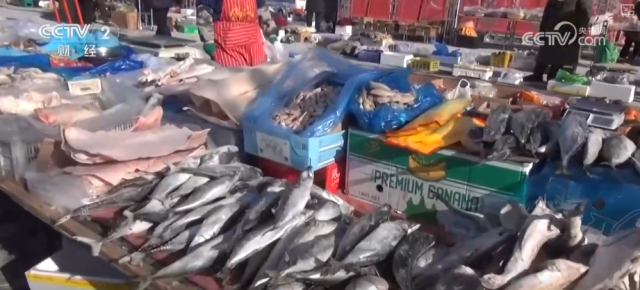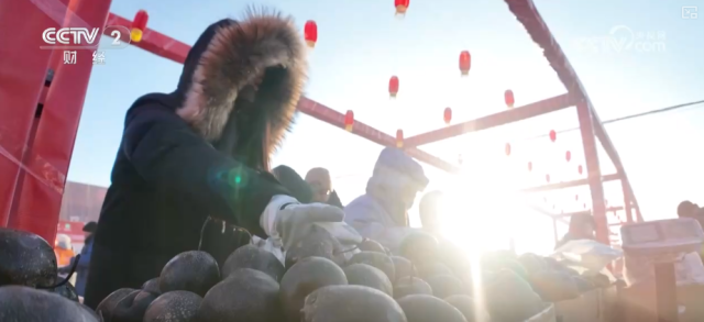 这里就是东北特色十足的生鲜冻货区。长春的冬天,室外零下20多摄氏度,堪称“天然大冰箱”。这冻鱼、冻豆包冻得老硬了。还有冻梨、冻柿子,都是东北人节庆团圆必备的滋味,化透之后一口咬下去满是汁水,清甜可口。