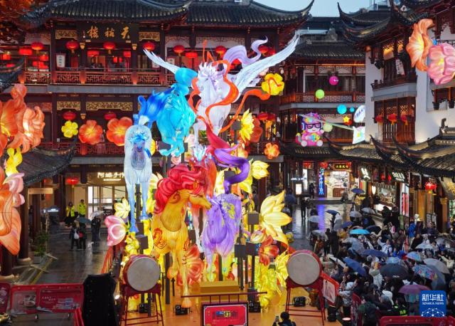1月26日晚,以“以梦为马,旷野生花”为主题的2026上海豫园民俗艺术灯会正式亮灯,开启为期36天的海派年味视觉盛宴。
