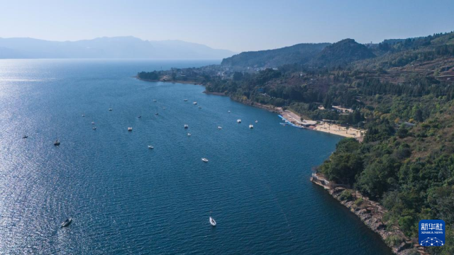 冬日抚仙湖碧波荡漾,风光宜人,吸引不少游客前来游览。