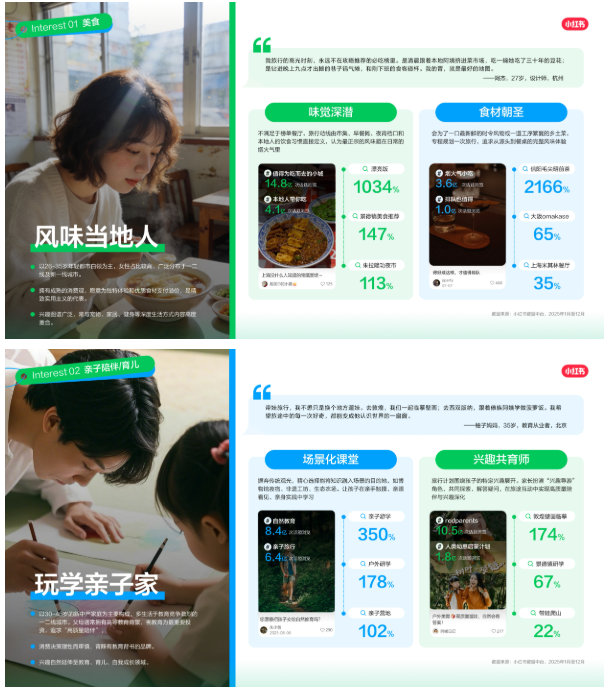 基于兴趣维度,将小红书文旅核心人群精准划分为八大类,为文旅商家提供了精细化运营的目标: