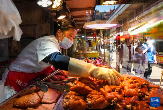 1月27日,人们在昆明大观篆新农贸市场内一边游览一边品尝特色美食。