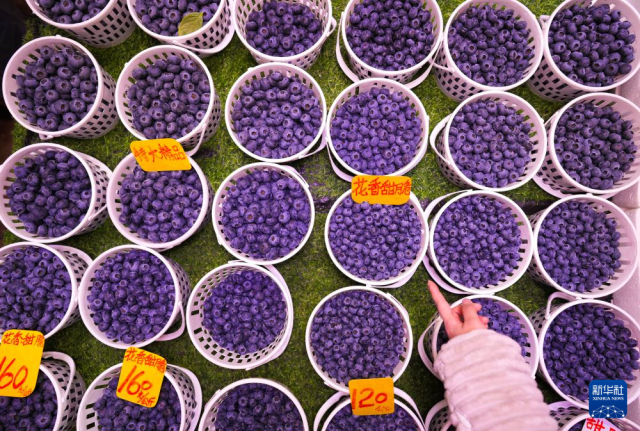 这是1月27日在昆明大观篆新农贸市场内拍摄的蓝莓。