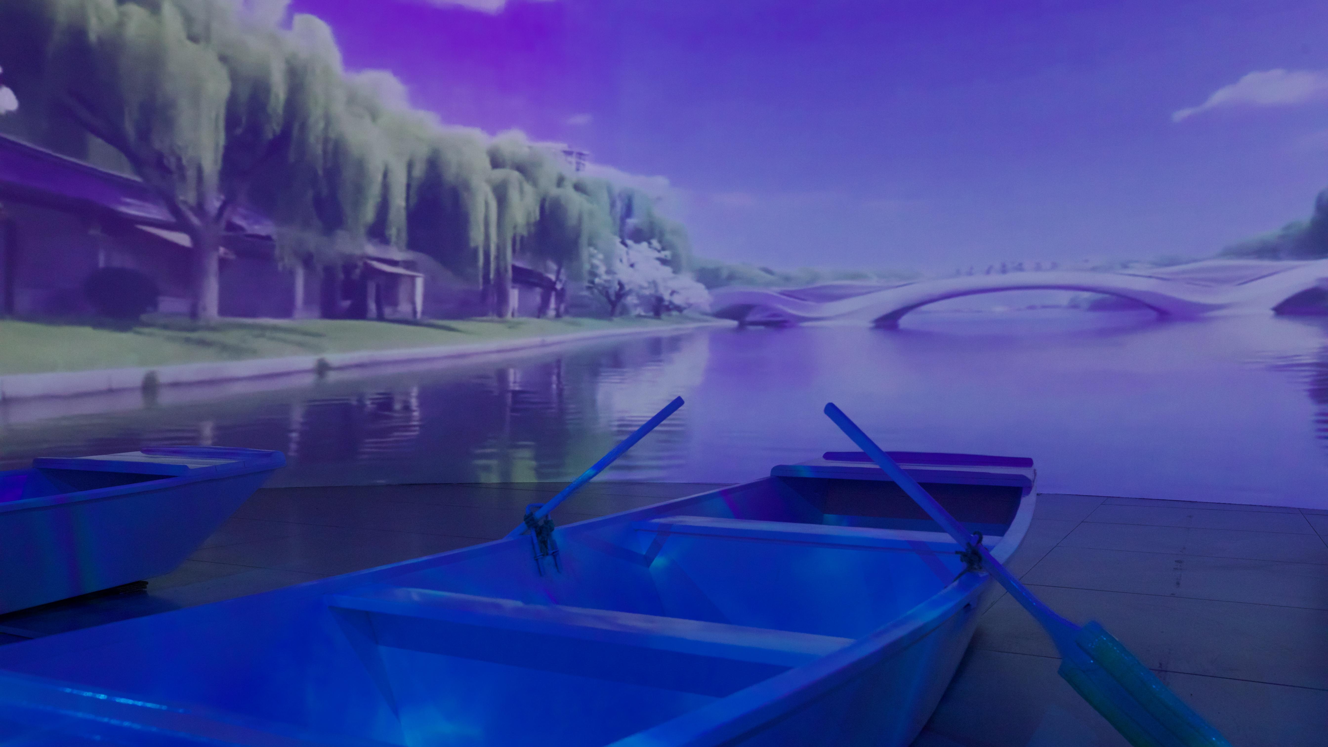 此外,展览的多媒体展区综合运用声、光、电技术,营造“乘船观景”的沉浸体验。观众可通过手动划桨,开启一段穿越千里的运河之旅,领略沿岸的晨昏交替与四时之美。