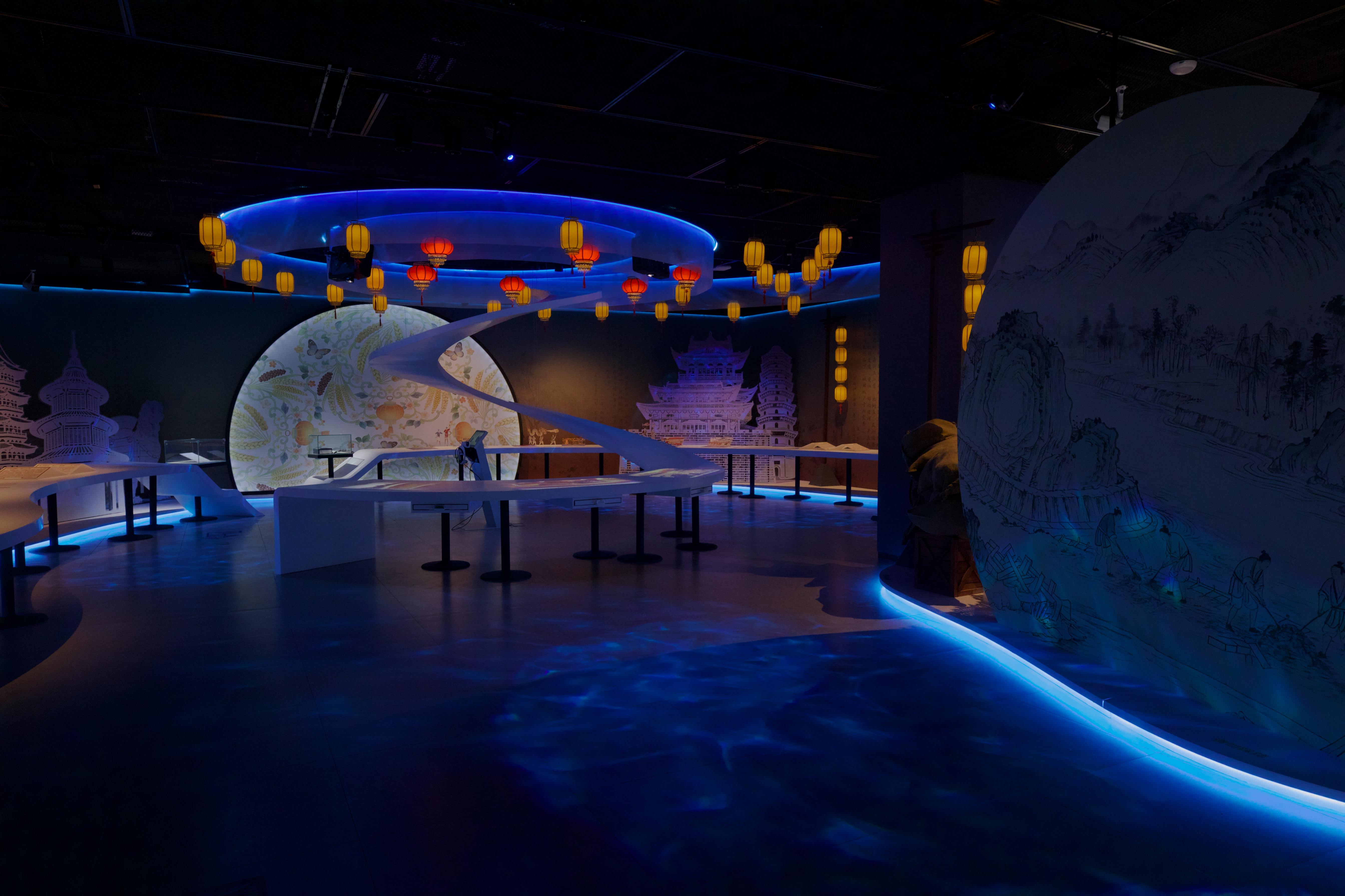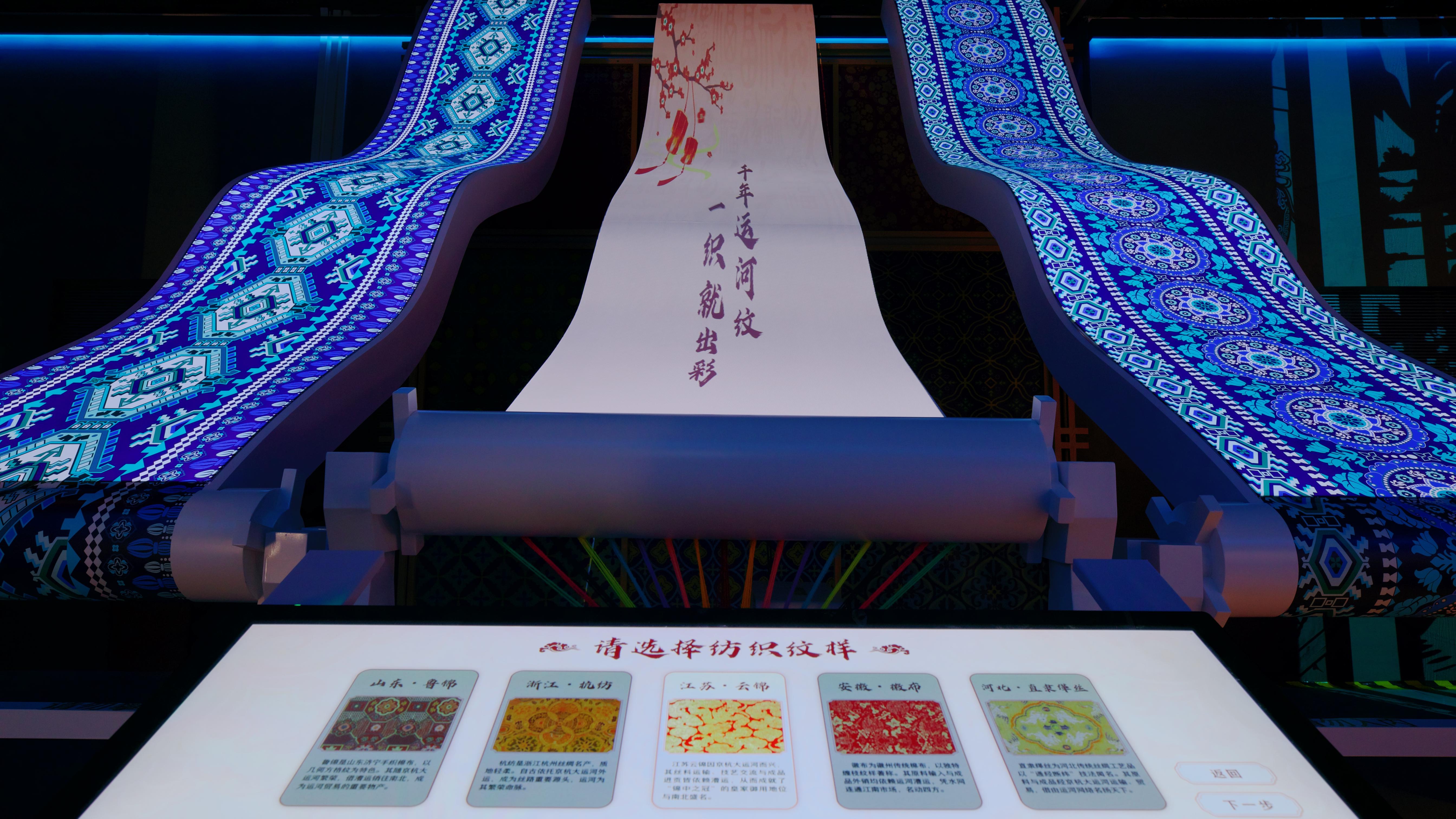 本次展览依循“记忆、生活、艺术、器物、未来”的叙事脉络,分为五个单元,全景展现大运河作为“流动的文化动脉”,如何孕育、串联并活化中华非物质文化遗产。展厅设计汲取大运河绵延不绝的水流意象,以蜿蜒的线条营造出空间的连续与韵律,并从沿线八省市非遗中提炼“纹样集群”,结合光影装置、科技交互等现代表达方式,唤醒观众对“运河非遗”的视觉感知。