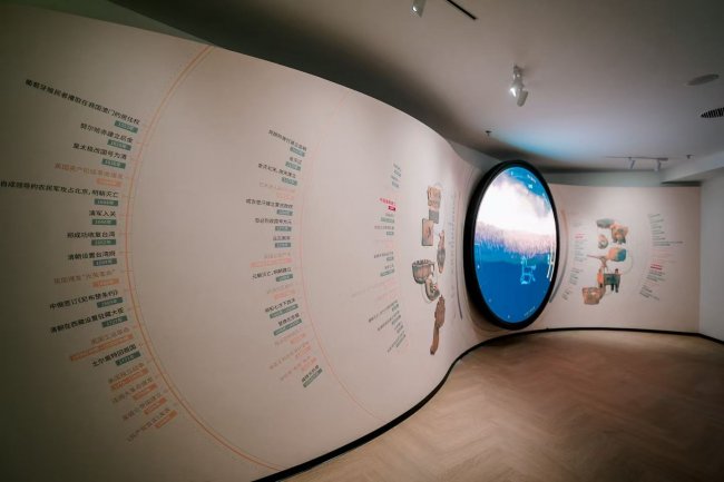 “史前-魏晋”部分,通过周口店洞穴沉浸空间、甲骨占卜互动、青铜器铸造工坊、名士与美人等展项,再现文明起源;“隋唐”部分以大运河行船、盛唐长安街景、丝绸之路驼队模型等展项、展品,展现开放帝国的气象;“宋元明清”部分,以应县木塔半包裹式三维沉浸空间、郑和宝船微缩舱、紫禁城沙盘等细致地剖析,诠释科技与艺术的巅峰;“近现代”部分,通过“复兴之路”历史文献墙、“大国重器”互动墙等,梳理民族复兴历程。
