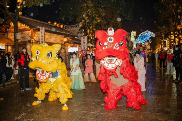 渡口民俗盛宴启,沉浸式演绎闹新春。2月15日-2月23日(腊月二十八至正月初七),衡山渡市井烟火区、观湘码头等区域迎来“渡口新春·民俗盛宴”,打造集非遗民俗演绎、国潮巡游、特色美食于一体的沉浸式春节体验。《薪火传奇》民俗喷火、《渡口花鼓灯》非遗表演、《渡口寻影戏》非遗皮影戏等经典节目轮番上演,《马上有福》财神巡游、《江潮共舞》国潮快闪、《入梦衡山渡》水上实景演绎等特色演绎精彩亮相,为游客带来视觉与感官的双重盛宴。同时,新春五大NPC互动沉浸游戏同步上线,“福、禄、寿、喜、财”五福主题体验趣味十足,投壶、时来运转、摔碗酒等传统游戏让游客沉浸式感受新春乐趣,凭活动获得的五福银票,还可兑换精美礼品或美食优惠抵用券,在延长游玩体验的同时,带动街区消费集聚。