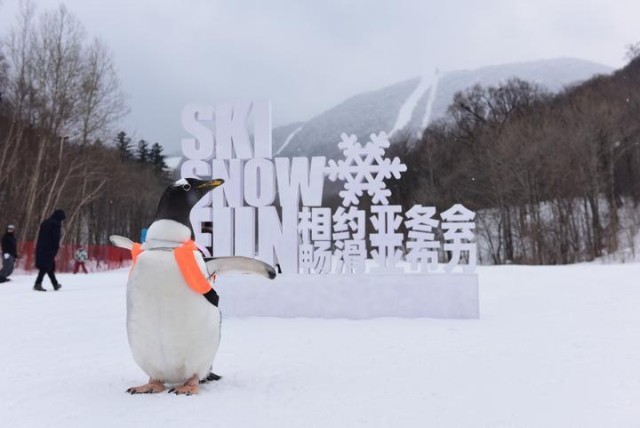 “淘学企鹅”“打卡”亚布力滑雪度假区。新华社发