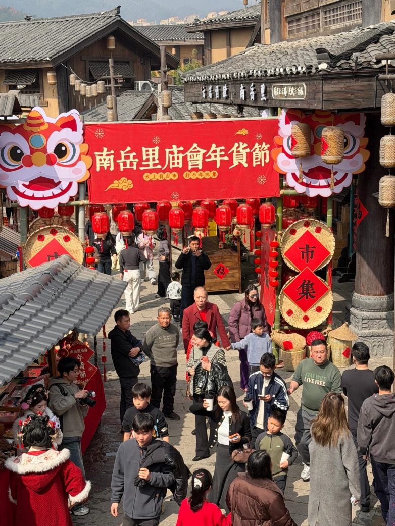 据了解,本次南岳里庙会年货节以传统文化为底色,以非遗民俗为载体,以水陆场景为依托,旨在通过沉浸式体验与互动式消费,增强春节期间文旅融合活力,让传统年俗在现代街区焕发新的生命力。本次庙会年货节活动一直持续到元宵节,接下来不妨带着家人朋友一起走进南岳里,逛庙会、购年货、赏百戏、闹元宵,在烟火升腾与灯火璀璨之间,共赴一场有温度、有年味、有文化底蕴的新春盛会。