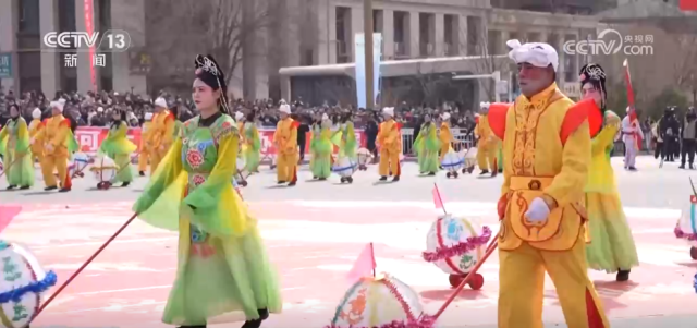 3月3日就是元宵节了,这几天,各地举办丰富多彩的民俗活动迎接元宵佳节的到来。在青海海东市,3000多人组成的民俗巡游队伍浩浩荡荡走上街头,舞龙舞狮引得观众阵阵喝彩。