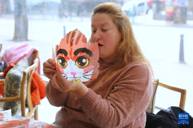 3月3日,在保加利亚首都索非亚,一名女子在索非亚中国文化中心举办的元宵节文化体验活动上制作元宵灯笼。