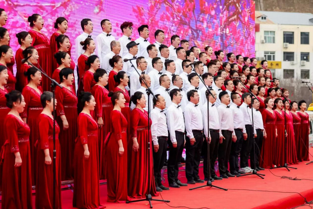 展演期间,主持人与非遗传承人展开互动采访,各位手艺人现场展示作品与特色产品。金丝珐琅《晋侯鸟尊》、非遗剪纸《龙觥》、毛线编织小马、麻绳钟表等作品,生动展现了传承人的匠心坚守;荞面碗团、油茶、红枣饴等传统手工美食风味醇厚,散发着浓郁的乡土气息。随后,大合唱《桃花红杏花白》《中国进入新时代》依次唱响,歌声饱含对新时代的美好憧憬,将现场氛围推向高潮,整场文艺展演在热烈的掌声中圆满结束。
