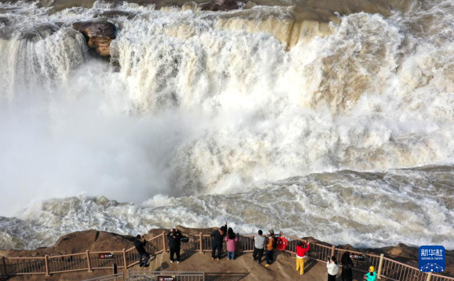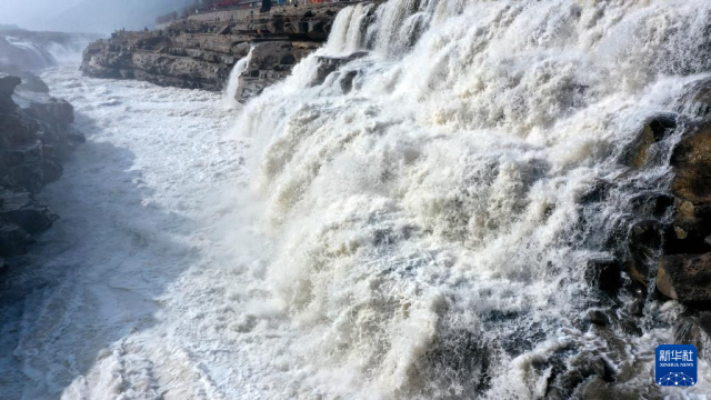 惊蛰时节,随着气温回暖,黄河上游河段融冰开河速度加快,壶口瀑布水量增大。