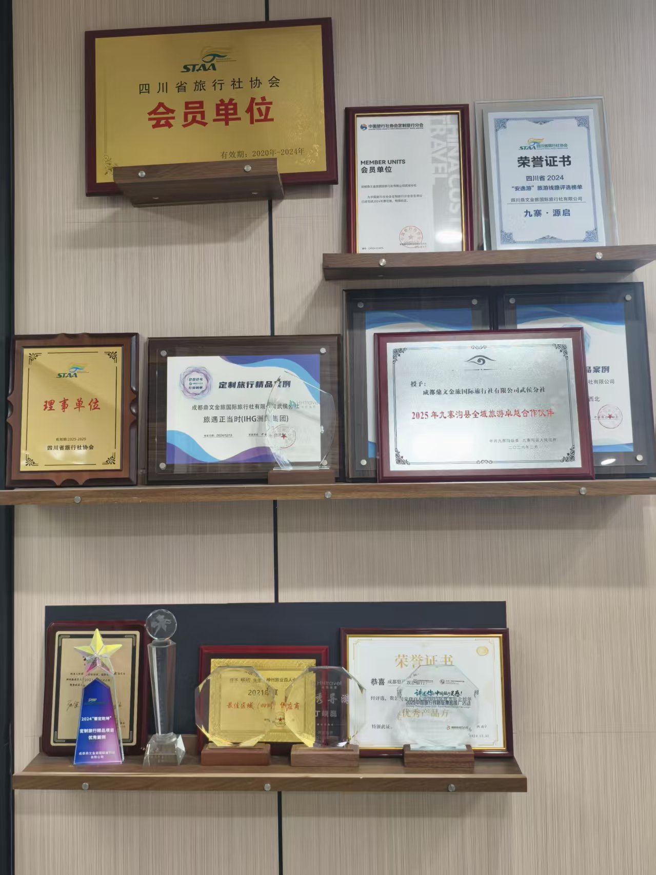 作为中国旅行社协会定制旅行分会会员单位、四川省旅行社协会理事单位、神州旅业百人会会员单位,悠途娱汇近年来屡获殊荣: