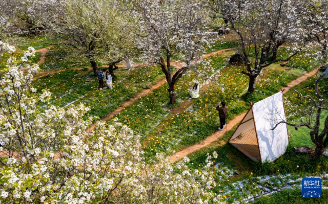 近日,云南昆明春光渐浓,繁花竞放,人们踏青赏花,感受盎然春意。