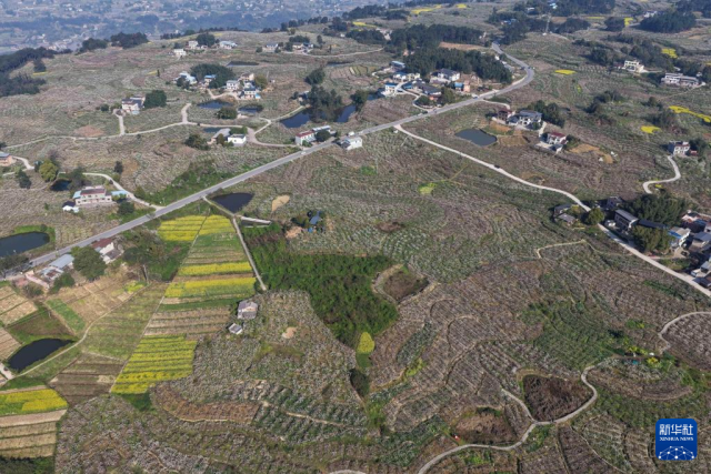 3月11日,重庆市永川区尖山村梨花竞相绽放(无人机照片)。