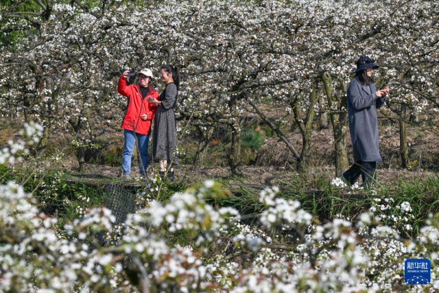 近日,随着气温逐步回升,重庆市永川区尖山村上万亩梨花竞相绽放,吸引众多游客前来踏青赏花。