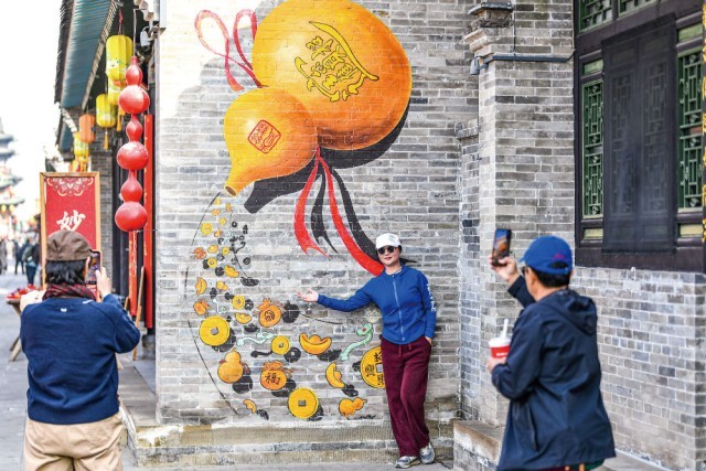 2月25日,游客在山西太原古县城拍照留念。新华社记者曹阳摄