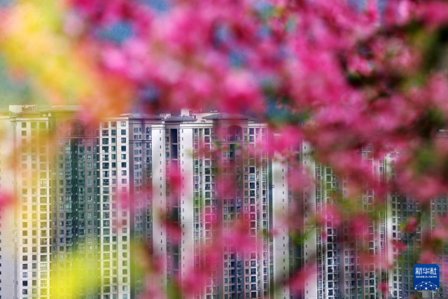 3月18日,桃花掩映着重庆市黔江区老城区一角。