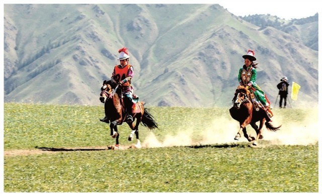 张掖世界地质公园七彩丹霞景区内举行的赛马活动。王将摄