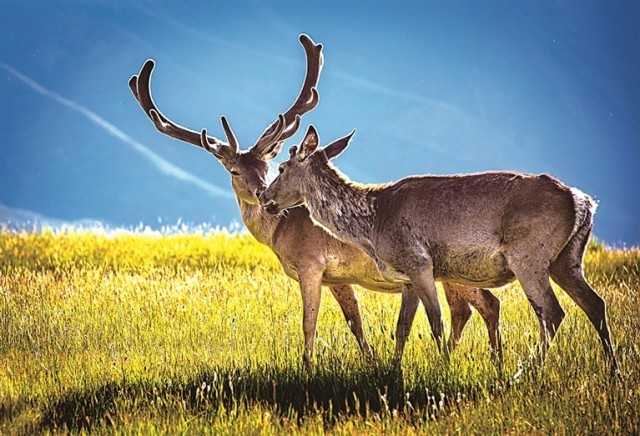 张掖世界地质公园内的国家二级保护野生动物马鹿。韩经荣摄