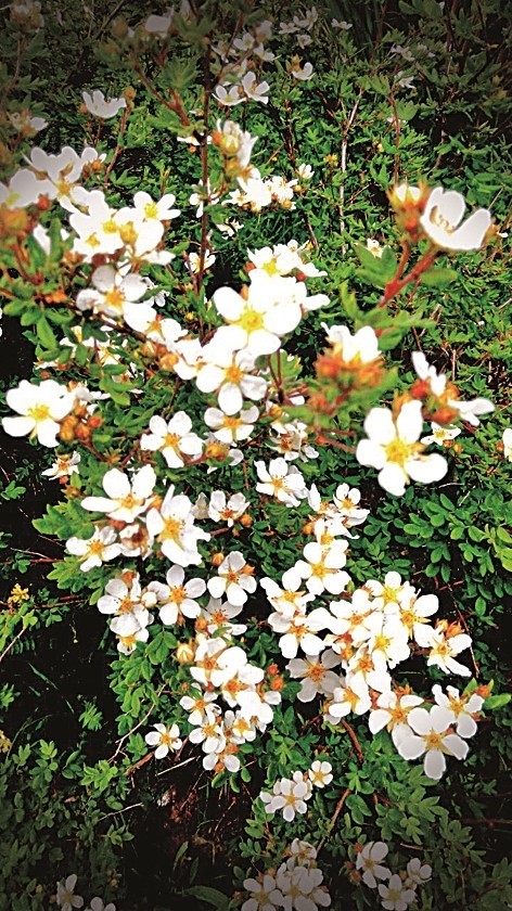 张掖世界地质公园内的高原银露梅。王将摄