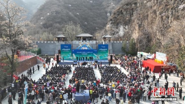 3月28日,河北省保定市涞水县野三坡·第十九届开山节暨“山野生活家”年度IP盛典在百里峡广场启幕。(无人机照片)何可人 摄