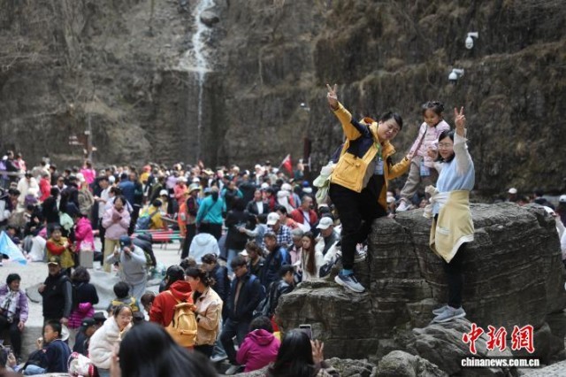 3月28日,游客在野三坡景区打卡游玩。何可人 摄