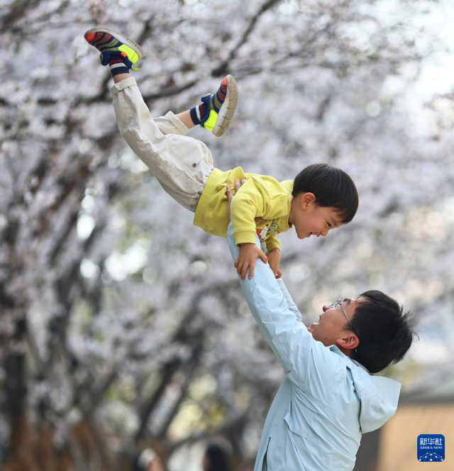 3月29日,在浙江省嘉兴市南湖区一家工厂的樱花园内,市民赏樱休闲度过愉快周末。