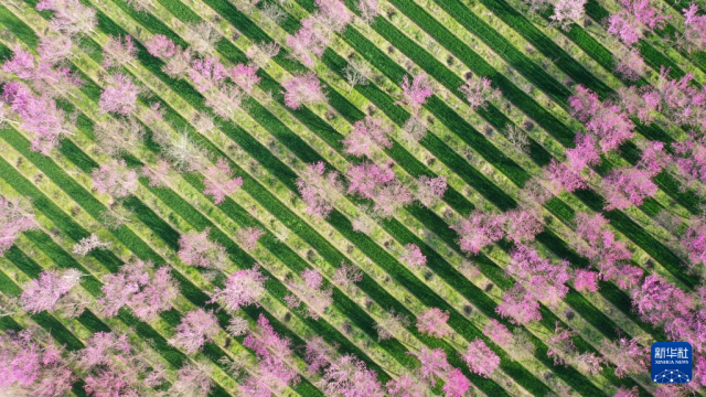 这是3月30日在河北省遵化市娘娘庄镇东小河村拍摄的花海(无人机照片)。