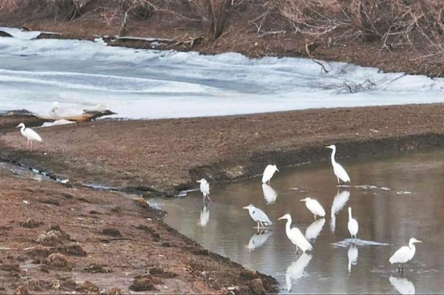 “看,那只就是东方白鹳,国家一级保护动物,去年也在这一带落脚。”3月20日,民警张子杨指着远处一只白羽黑翅的大鸟,对身边同事说。为了不惊扰这些“客人”,他们不敢靠得太近,而是用上了“新装备”——无人机升到五十米高空,实时传回湿地深处的画面。与此同时,两组徒步巡逻的民警沿着江畔泥泞的滩涂仔细搜寻,检查有无残留的猎捕工具或毒饵;同时,巡逻车在沿江主干道来回巡控,劝离试图靠近核心栖息区的无关人员。地面巡、车辆巡、空中巡,“三位一体”织成一张看不见的守护网。