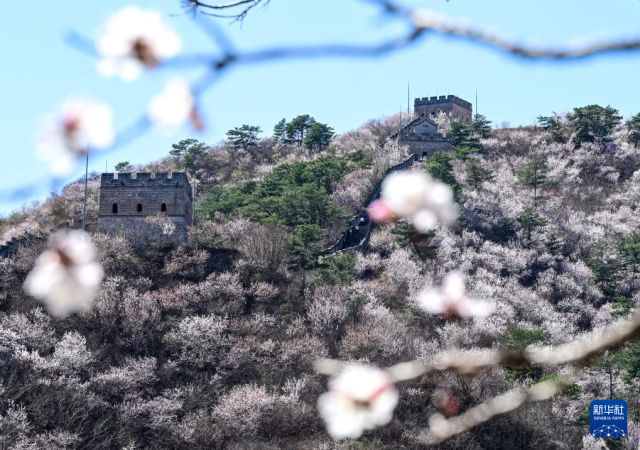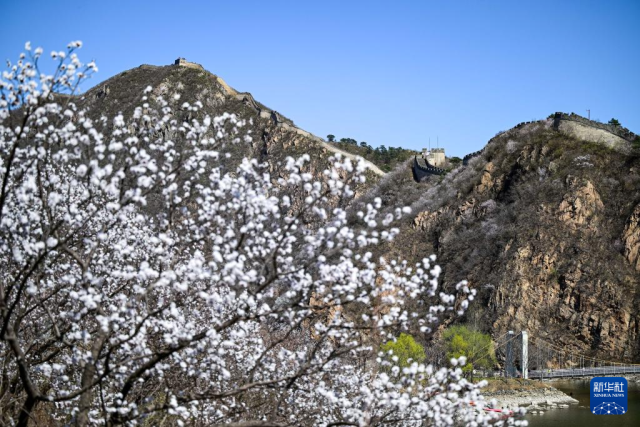 仲春时节,北京怀柔黄花城水长城边,山花竞相绽放,与长城交相辉映,构成一幅壮丽的春日画卷。