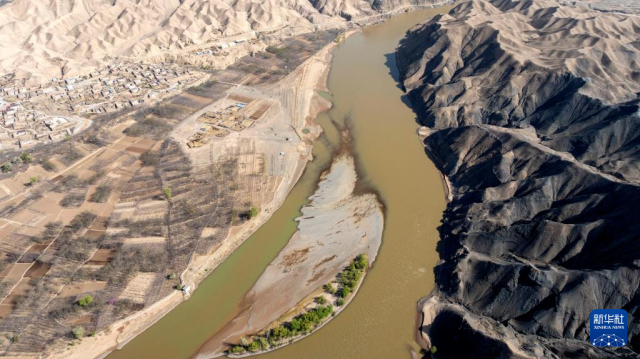 春日的宁夏中卫市南长滩村,黄河水蜿蜒流淌,岸边绿芽初绽,村里梨花竞相开放,勾勒出一幅生机盎然的黄河春景图。