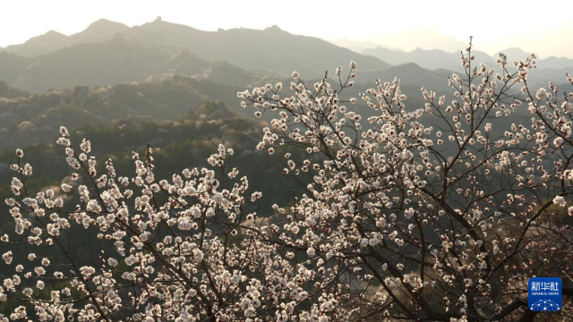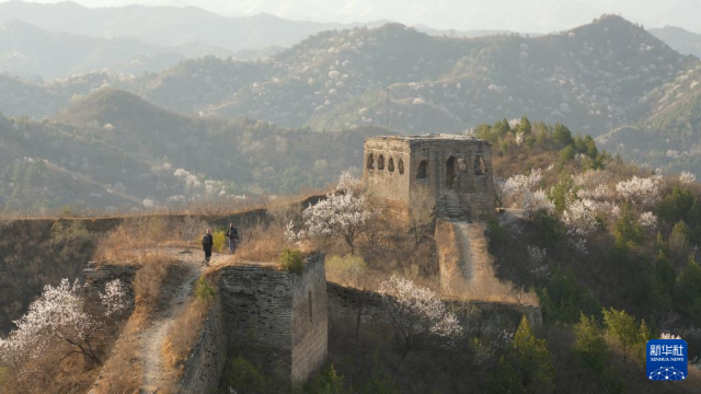 这是4月8日在北京市密云区古北口镇拍摄的蟠龙山长城春景。