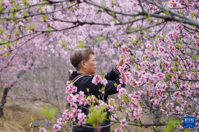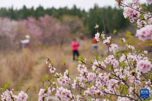 4月9日,游人在山东省淄博市博山区石马镇上焦村桃林赏花游玩。