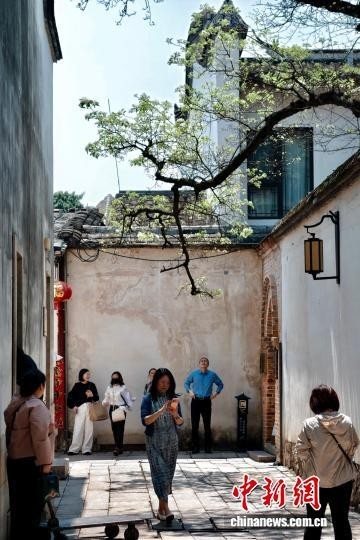 4月9日,福建福州,市民和游客在三坊七巷观看流苏花。中新社记者 王东明 摄