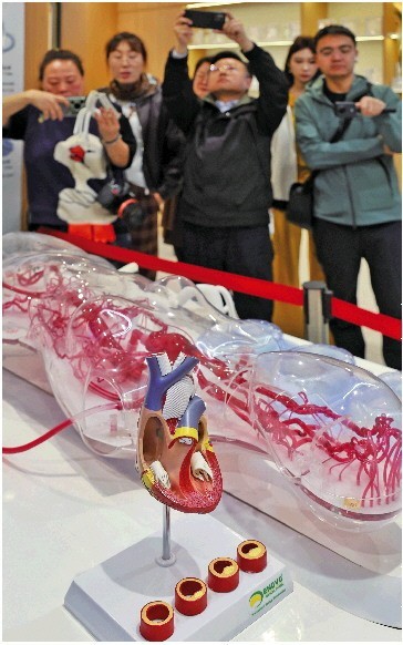 ◤愉悦生命科技馆内展示的人造血管,是产业跨界融合的硬核科技成果。齐鲁晚报王鑫 摄