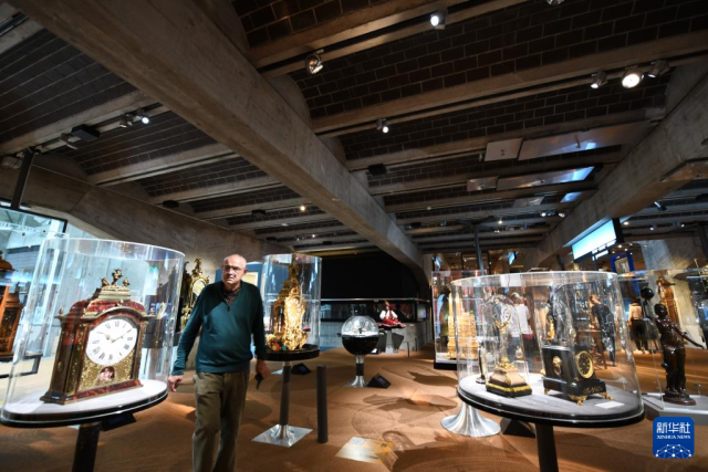 4月12日,一名男子在瑞士拉绍德封的国际钟表博物馆内观看展品。