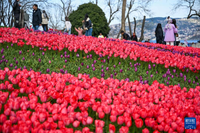近日,土耳其最大城市伊斯坦布尔迎来一年一度的郁金香节。五颜六色的郁金香在伊斯坦布尔多个公园绽放,吸引众多游客前来观赏。