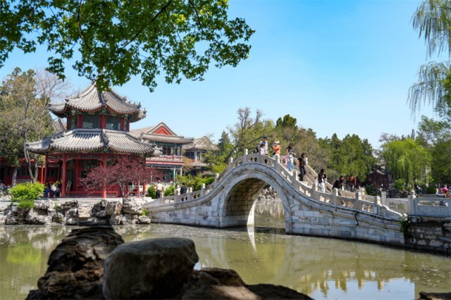 4月11日,游客在保定古莲花池游玩。