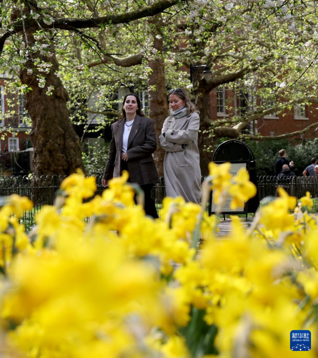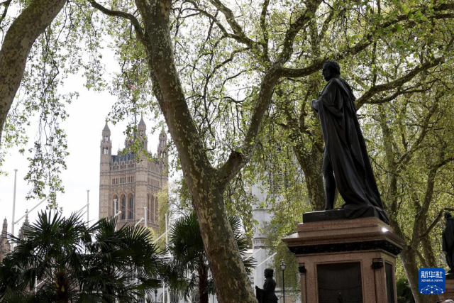 这是4月14日在英国伦敦议会广场拍摄的春景。