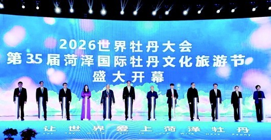 随后,参会领导和嘉宾共同触摸启动柱,启动2026菏泽牡丹节会。